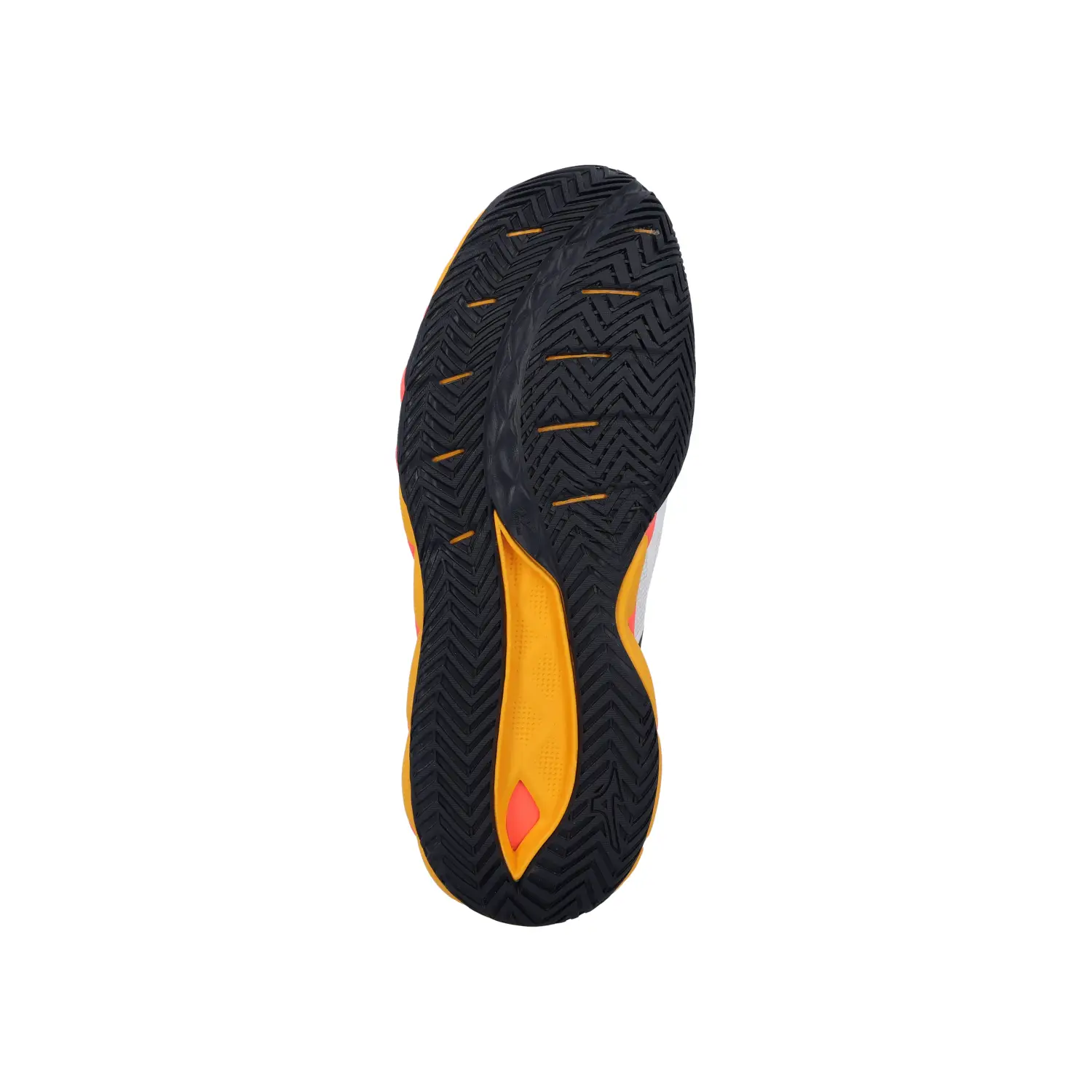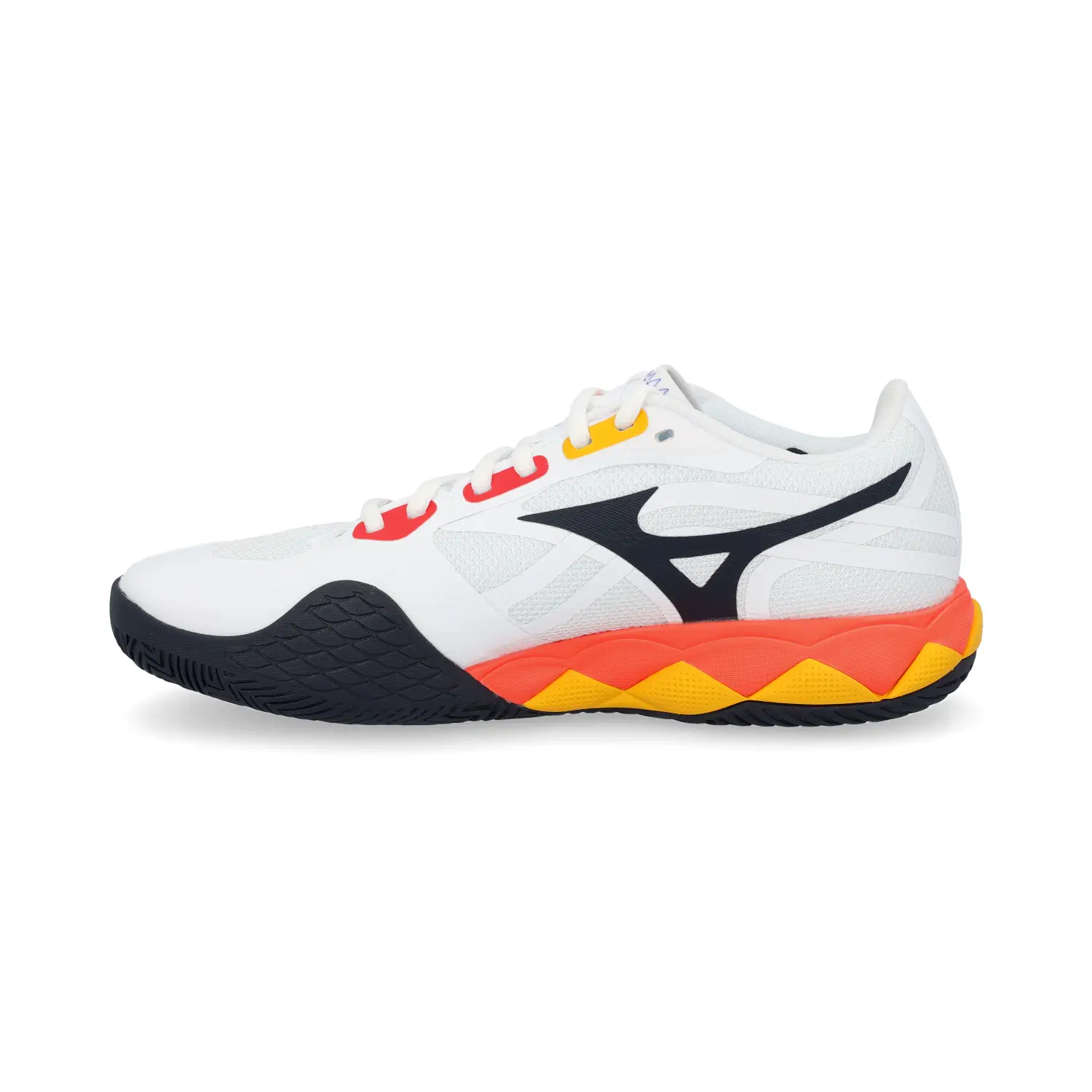 The addition of innovative MIZUNO ENERZY NXT technology in the heel and forefoot allows for greater energy return and superior shock absorption , ideal for players who hit hard from the baseline. Additionally, the new Dyna-Heel Lock Lite system provides a lighter, more secure fit from ankle to heel.