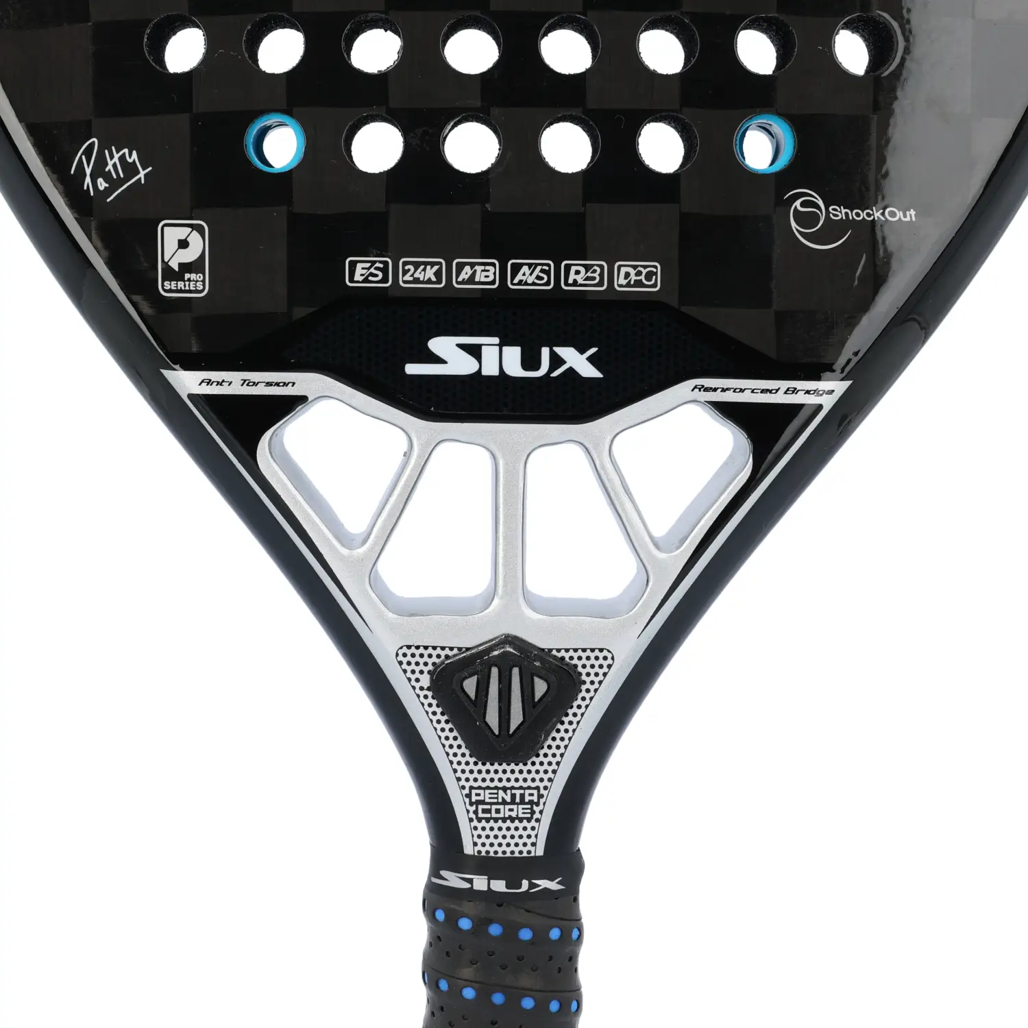 New edition of the Siux Trilogy II Control 24K Patty Llaguno 2023. A special racket for advanced padel players with a controlled playing style. Achieve powerful shots with its 24K textreme carbon faces.